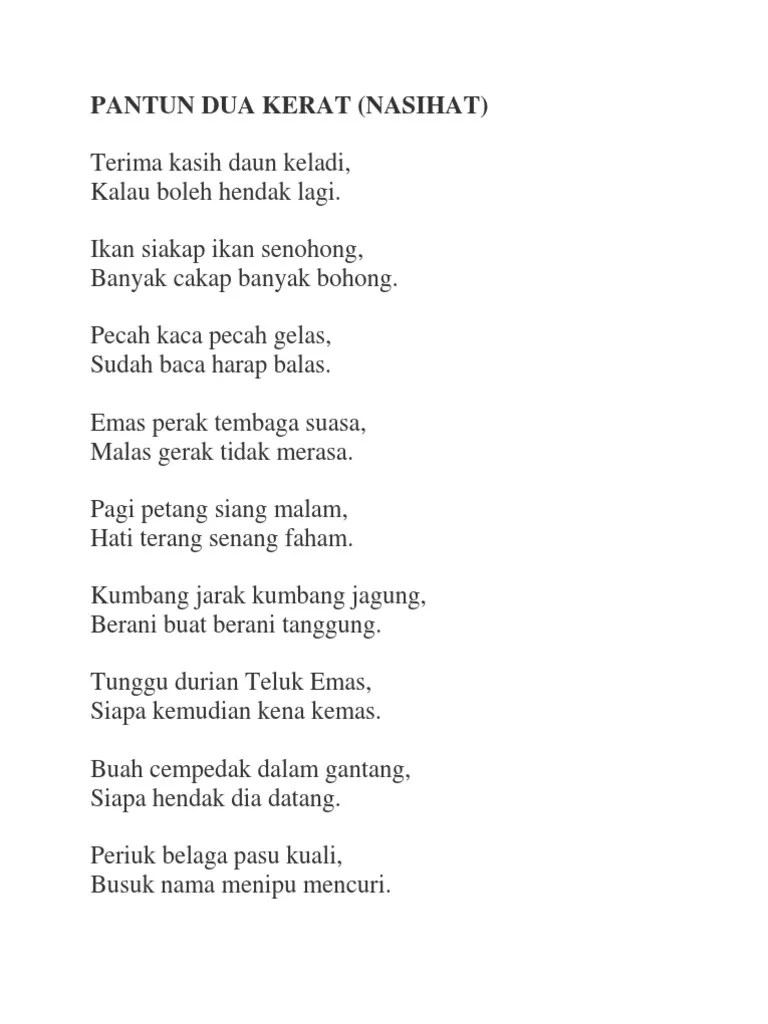 Bahasa melayu tahun 1 : Dua tiga kucing berlari., yang lain rileks jer. Puisi tradisional pantun ppt download. Pantun cinta 2 kerat romantis. Pantun 2 kerat pickup line.